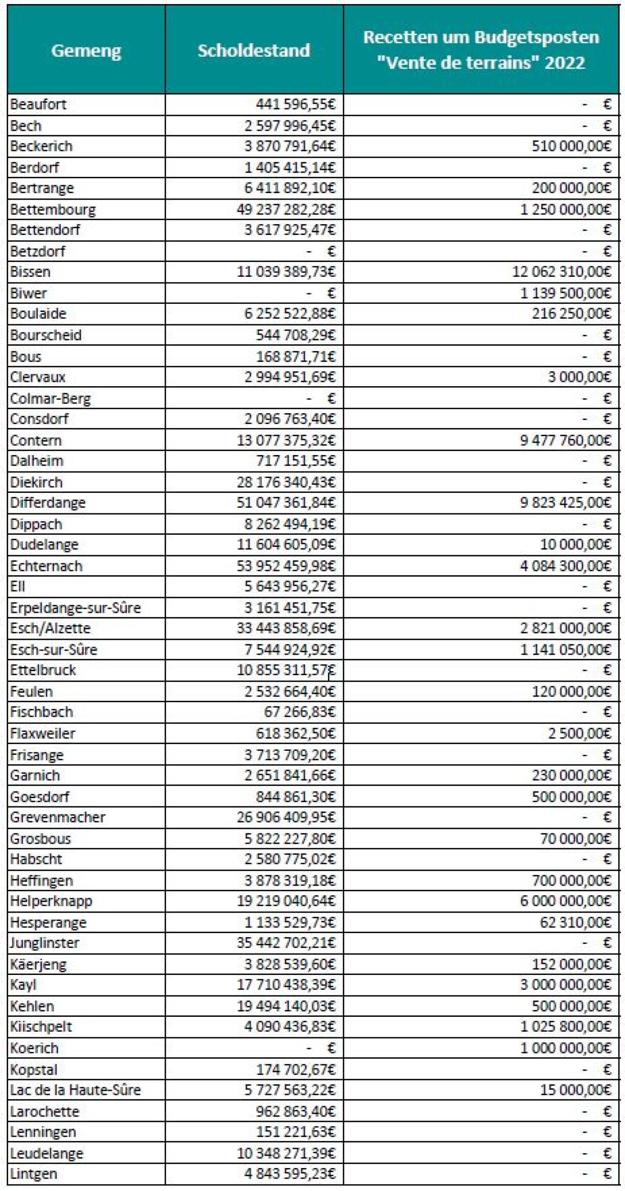 About a dozen municipalities have no debts, including the municipality of Luxembourg. To date, there is no reference that shows the debt per inhabitant.