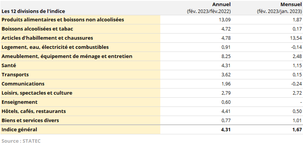 Over a one-year period, food prices increased by 13%. Furniture as well as household goods and routine household maintenance equipment also rose substantially by 8.25%.
