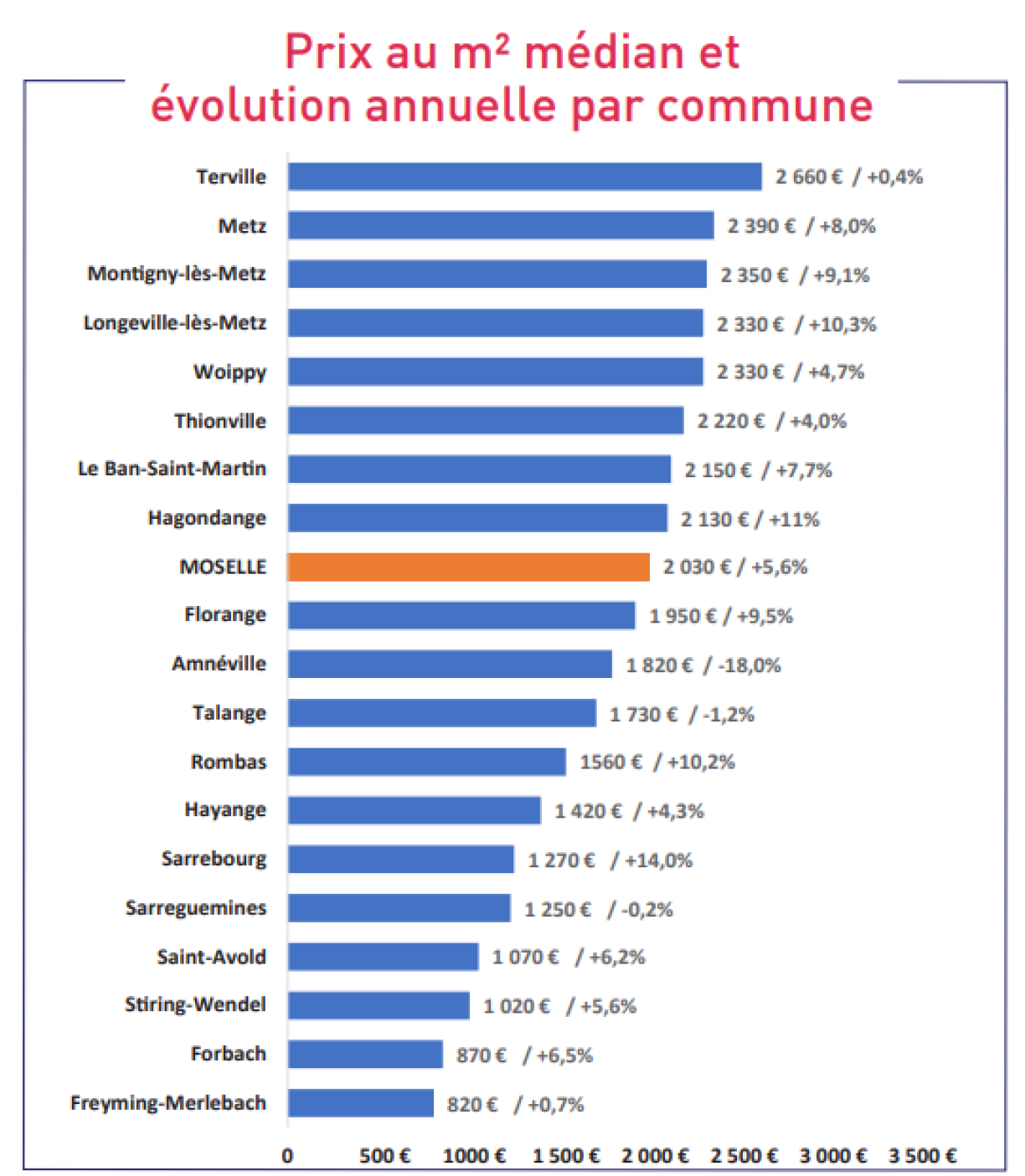 In other words, there should be something for every budget in Moselle. Sarrebourg has meanwhile seen the biggest annual increase (+14%). Conversely, it is in Amnéville that prices have fallen the most (-18%).