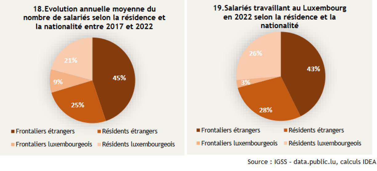 The evolution of the labour market significantly contributes to these trends of new workers coming to live in the country, but also of new cross-border workers whose share of total net job creation has risen from 49% to 54% over the last five years. New foreign residents account for a quarter of job creation.