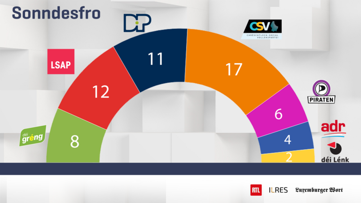 According to the latest political poll (Sonndesfro) conducted by Ilres on behalf of RTL and the newspaper ‘Luxemburger Wort’, voting intentions would be in favour of the Christian Social People’s Party (CSV), if the elections were held in April.