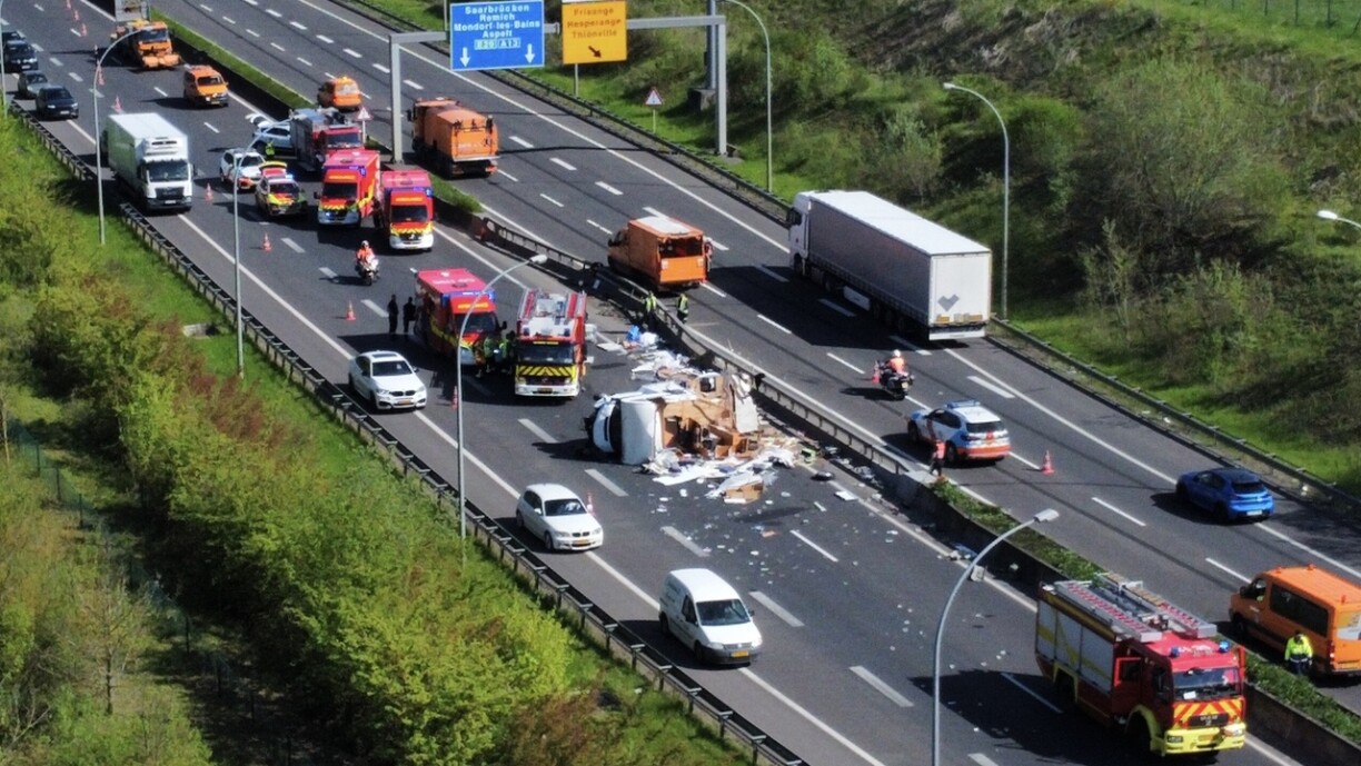 Although the accident occurred on the lanes towards Pétange, there is a lot of debris all over the motorway, including on the opposite lanes.