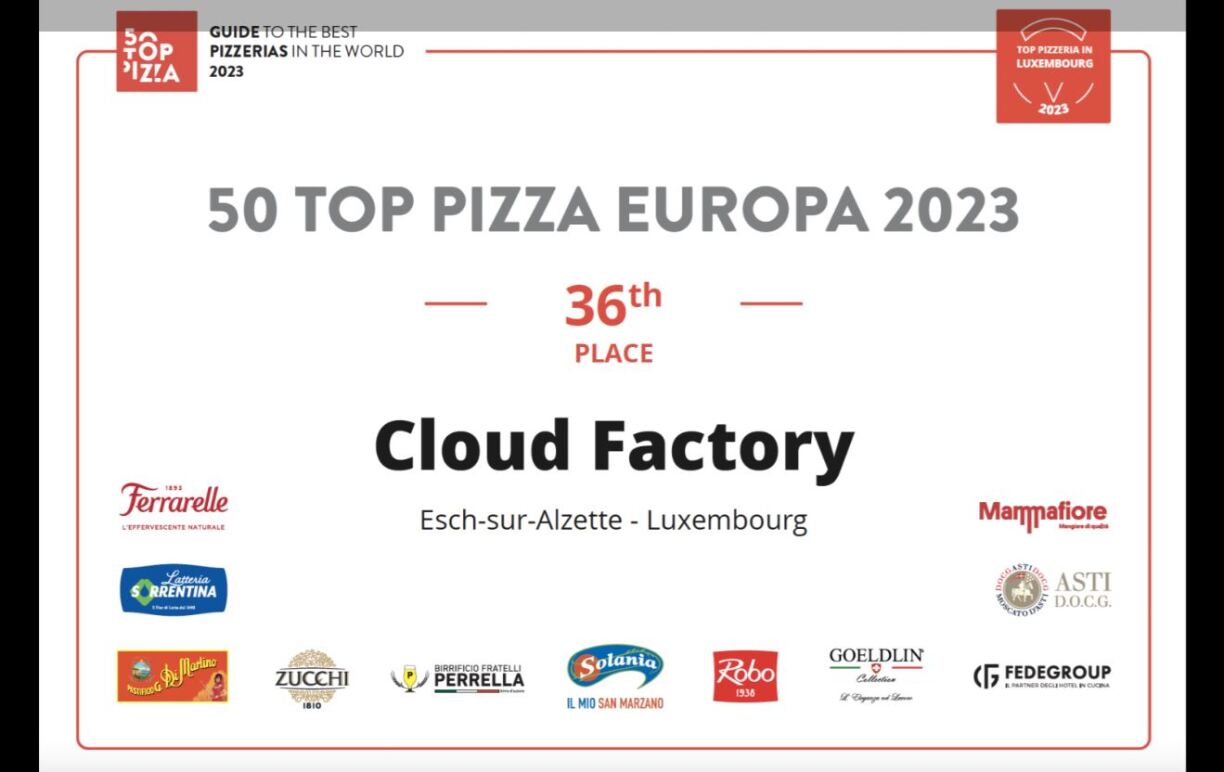 Luxembourg based eaterie Cloud Factory has snagged a prestigious award, landing well within the top 50 Pizza restaurants in Europe. Luxembourg can legitimately lay claim to having some of the best restaurants in the lands, and any new reward is a welcome one. Thus, Cloud Factory’s well-earned placement will have been met with a fair number of approving nods.