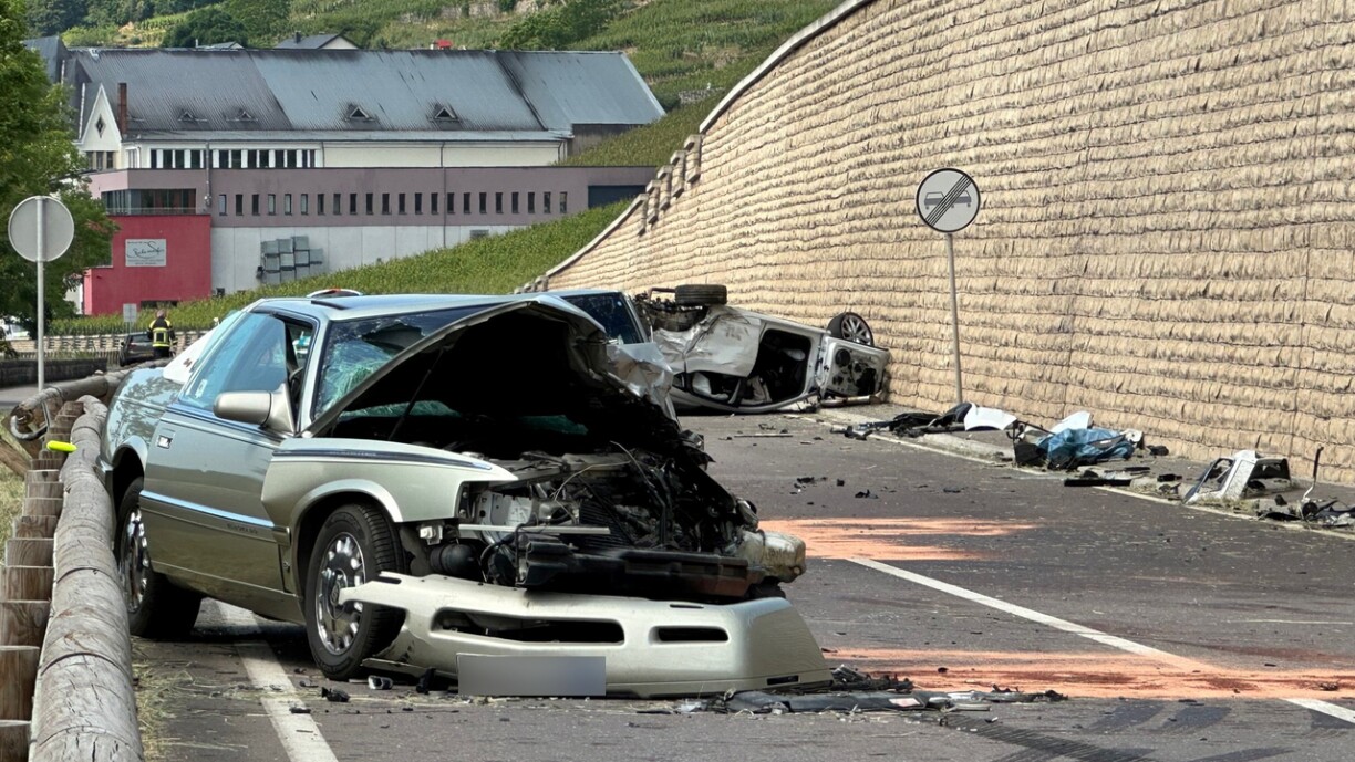 According to police information, a vehicle coming from Ahn veered onto the other lane in a bend, hitting a second vehicle coming from the other direction. The first car crashed and rolled over, ending up on its roof. The driver was seriously injured.