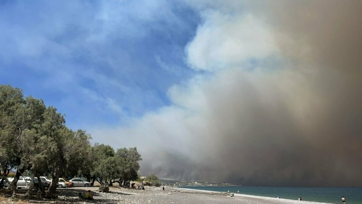 Jenna Kolber was holidaying in the southeast of the island, in Kiotari, last week, before the fire broke out. “On Friday night, we started to smell the fire outside and the clothes on our balcony were covered in ash. We covered the doors with damp towels before we went to bed, to stop the smoke from getting in,” she says.