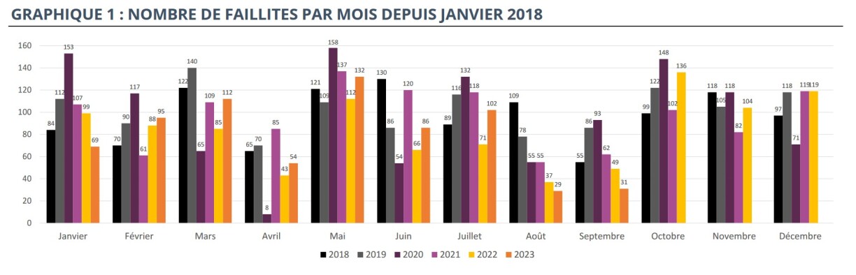 During this period, 162 companies faced bankruptcy, marking a 3% increase compared to the same quarter in 2022. In addition, 30 companies underwent liquidation in Q3 2023, a sharp decrease (-63%) compared to Q3 2022.