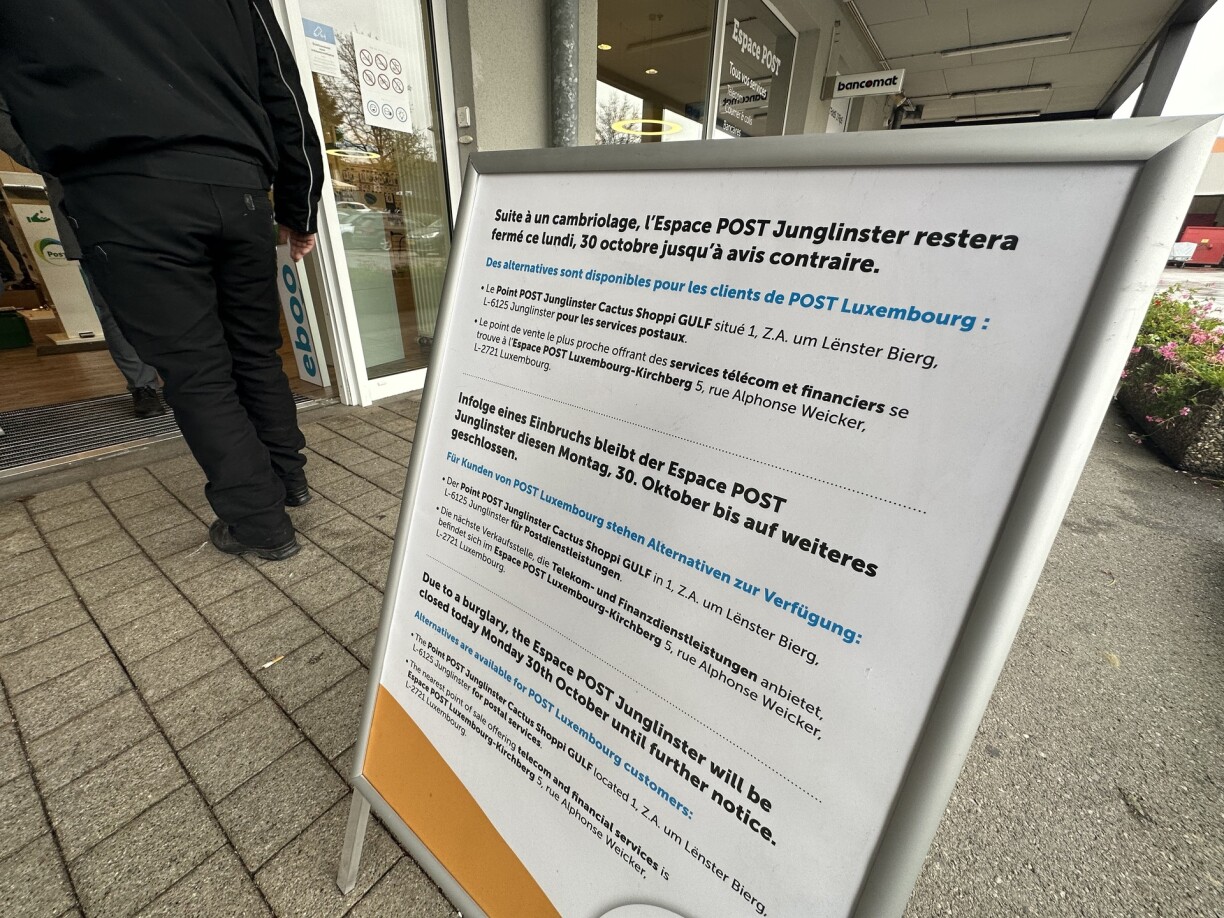 On Monday morning, the Junglinster Post branch office saw no waiting customers. The establishment, located on Rue Hiehl, was forced to close its doors on 30 October due to an attempted burglary. It will remain closed until further notice.