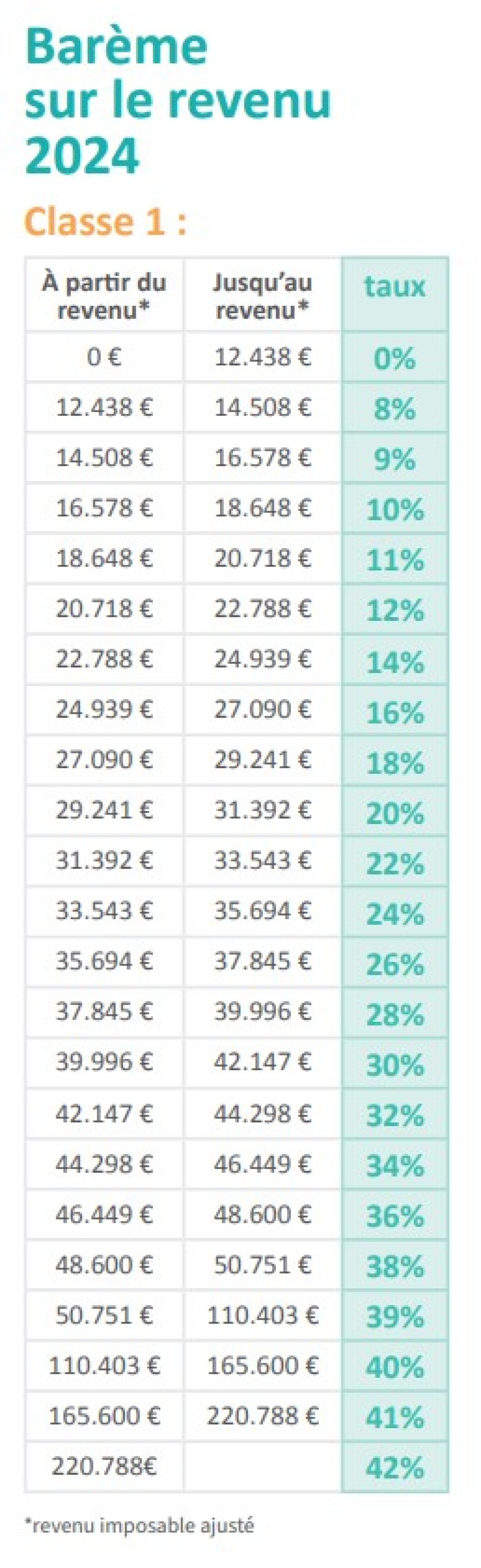 In short, according to the bill, the first income bracket, at which tax is payable, will rise from the current 11,265 euros to 12,438 euros. The basic rate will then look like this: on the bracket from 12,438 to 14,508 euros gross per year, the tax rate will be 8%.