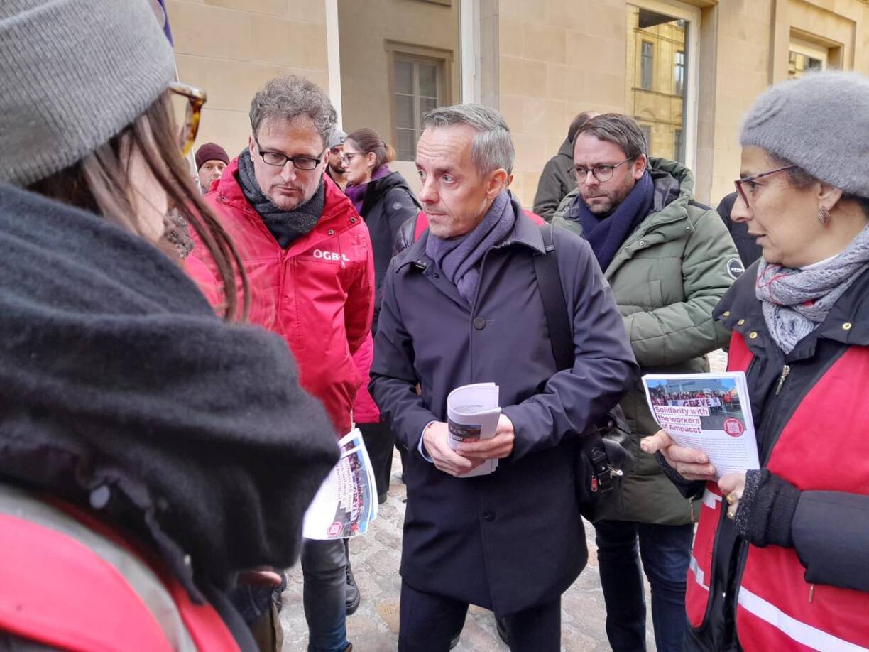On Wednesday, Minister of Labour Georges Mischo presented the labour chapter of the coalition agreement between the Christian Social People’s Party (CSV) and the Democratic Party (DP) to the responsible parliamentary committee. However, his arrival was met with approximately 30 demonstrators from the Independent Luxembourg Trade Union Confederation (OGBL) staging a protest picket regarding the ongoing situation at Ampacet in Dudelange.