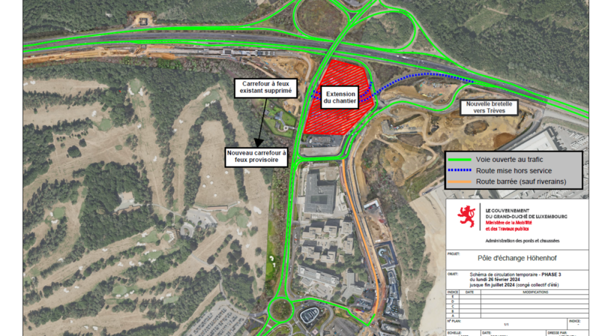As part of this phase, modifications will be made to the slip road leading from Luxembourg City to Trier at the Senningerberg interchange. These adjustments aim to create additional space necessary for the expansion of the worksite near the interchange.