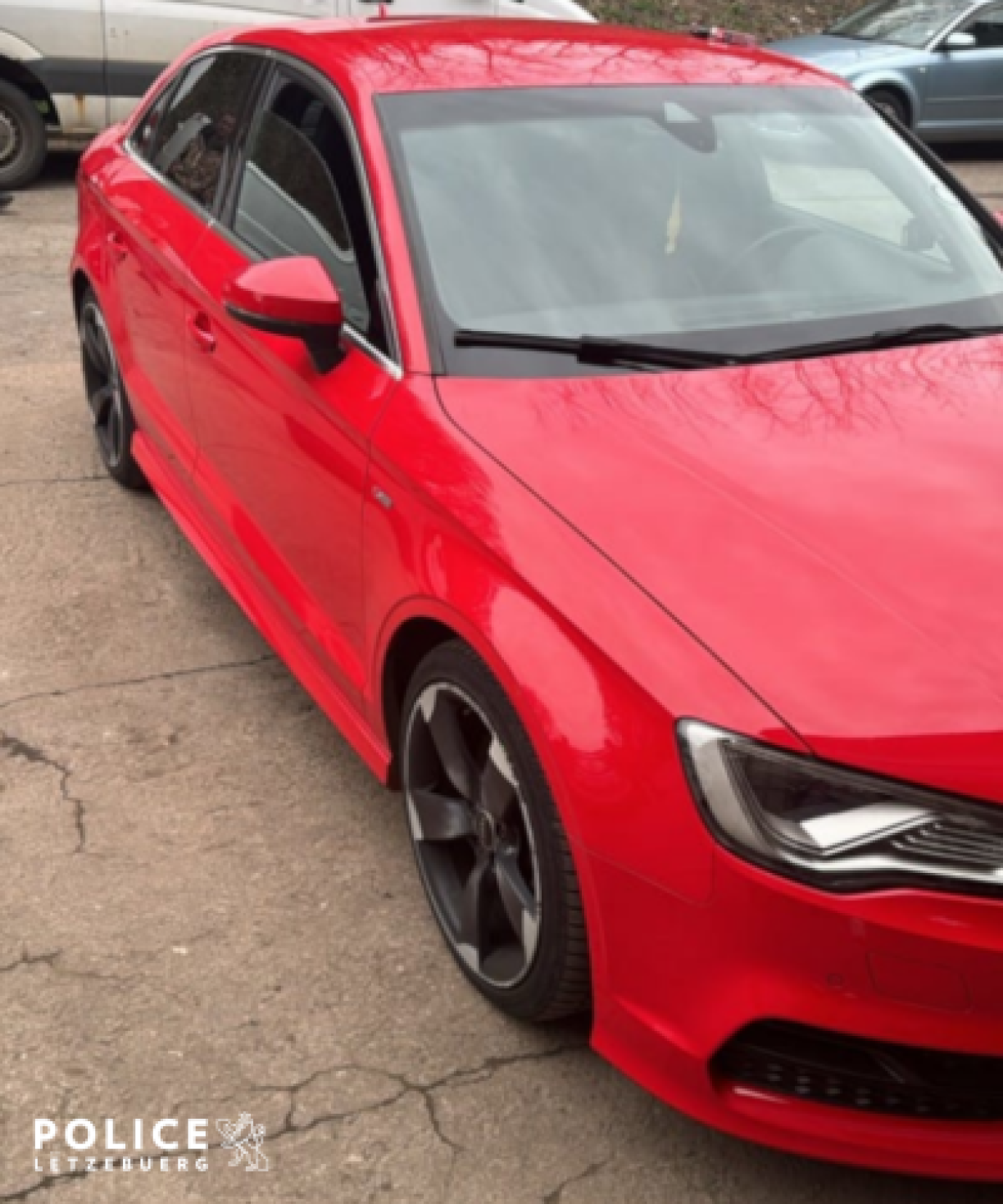The stolen vehicle is a red Audi A3 with the number plate PE7533.