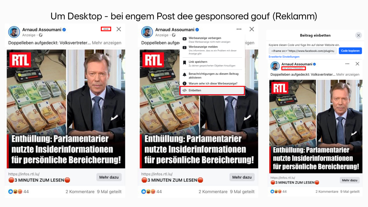 The creators of the fraudulent video used footage from RTL broadcasts, incorporating segments from various programmes adorned with the old RTL logo. The video depicts Gaston Reinesch, Governor of the Luxembourg Central Bank, purportedly discussing a financial project in the RTL Radio studio. However, the original audio has been replaced with a German version. It is highly likely that AI was employed in the production, as not only was Reinesch’s voice mimicked, but his lip movements approximately synchronise with the German audio. A discerning eye can observe unnatural mouth movements, but the deception can easily fool the unsuspecting viewer.