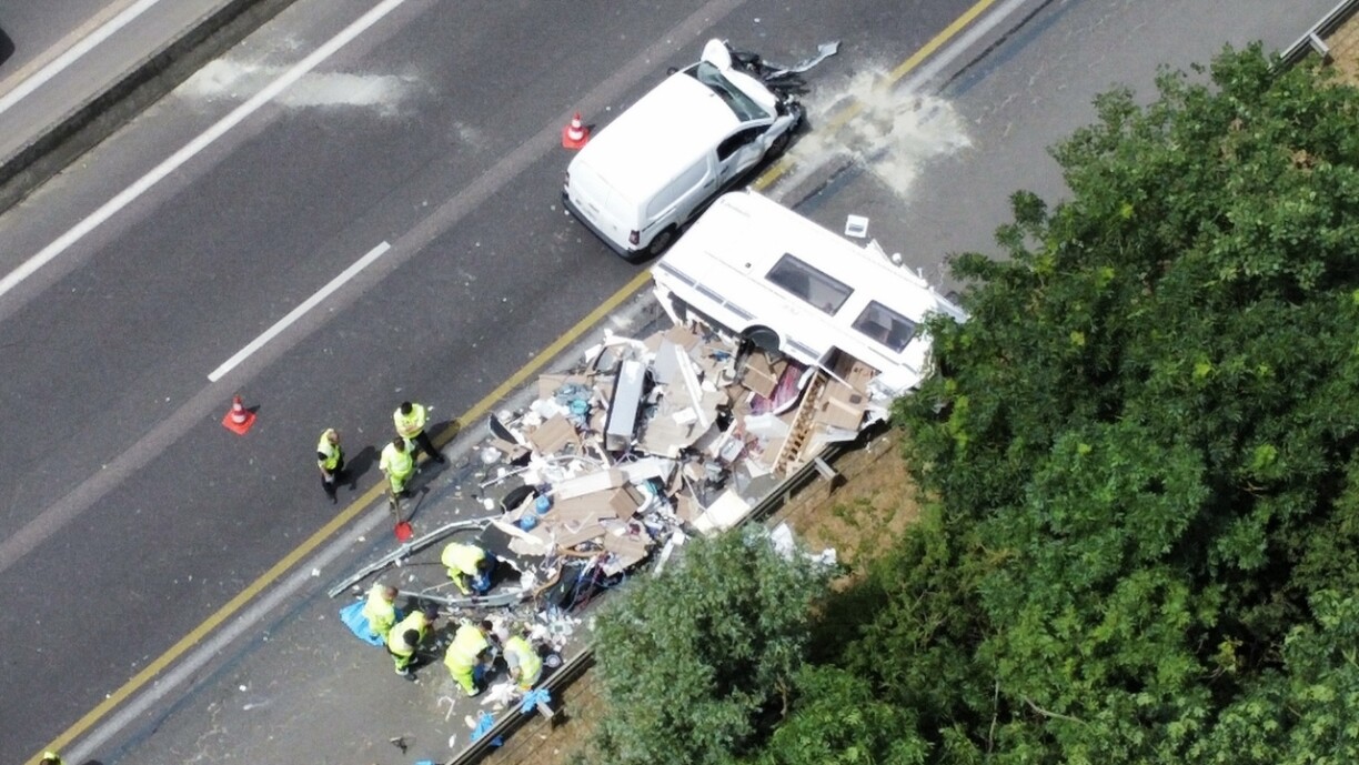 Shortly after midday, three cars and a caravan were involved in a collision on the A3 motorway towards Luxembourg City.