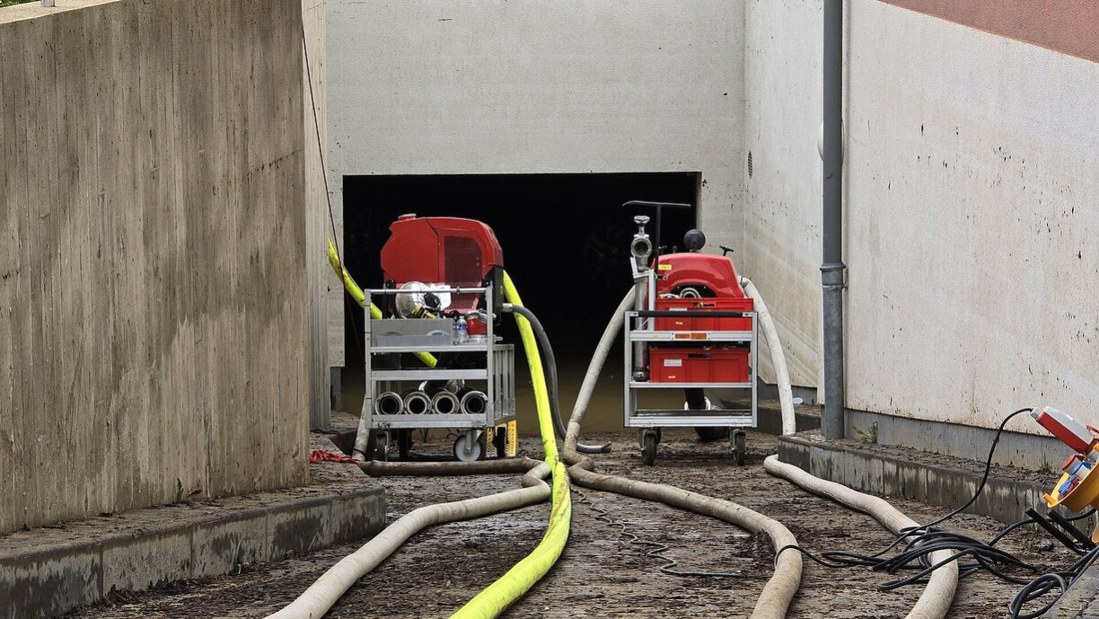 In Rue d’Athus in Linger in the municipality of Käerjeng, 3 cellars and garages, among others, were flooded. Many cars could no longer be moved. The fire brigade was on site on Sunday morning.