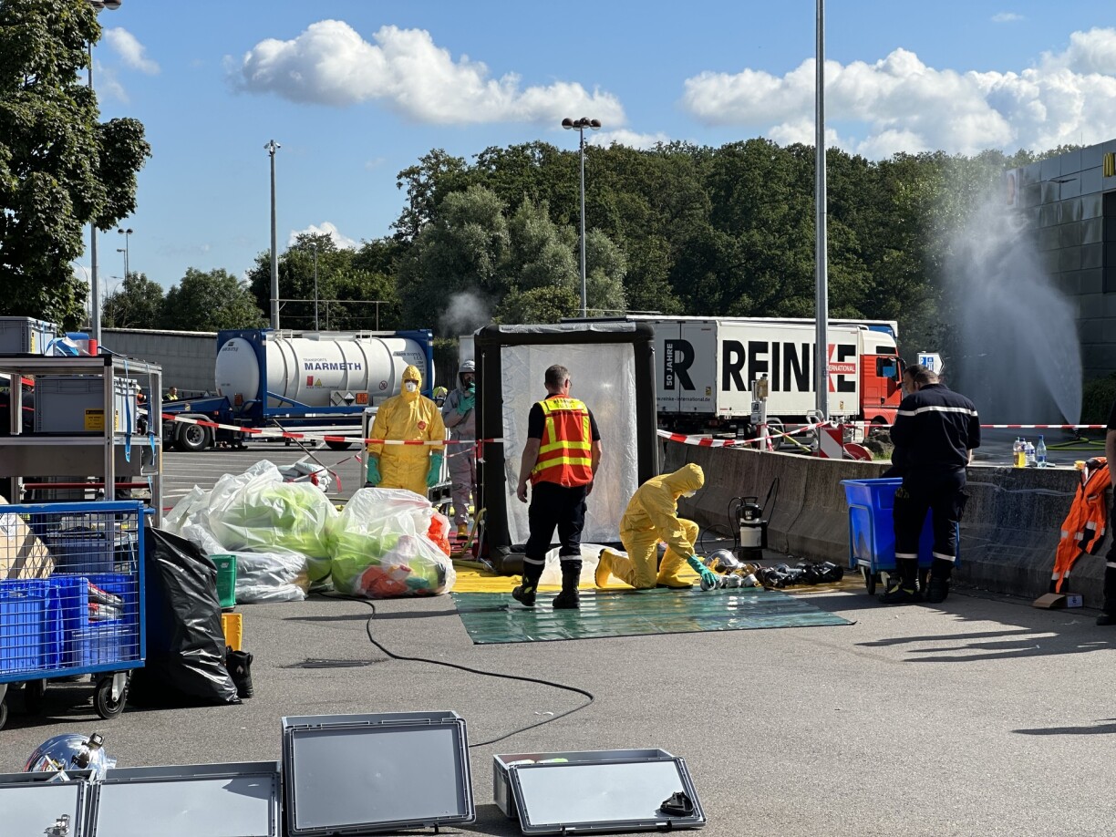 The Berchem service station was partially closed to traffic, direction Luxembourg City, early Thursday morning due to a hydrochloric acid leak from a parked lorry. The Grand Ducal Fire and Rescue Corps (CGDIS) was alerted to the situation around 4am and promptly dispatched a team to the scene.