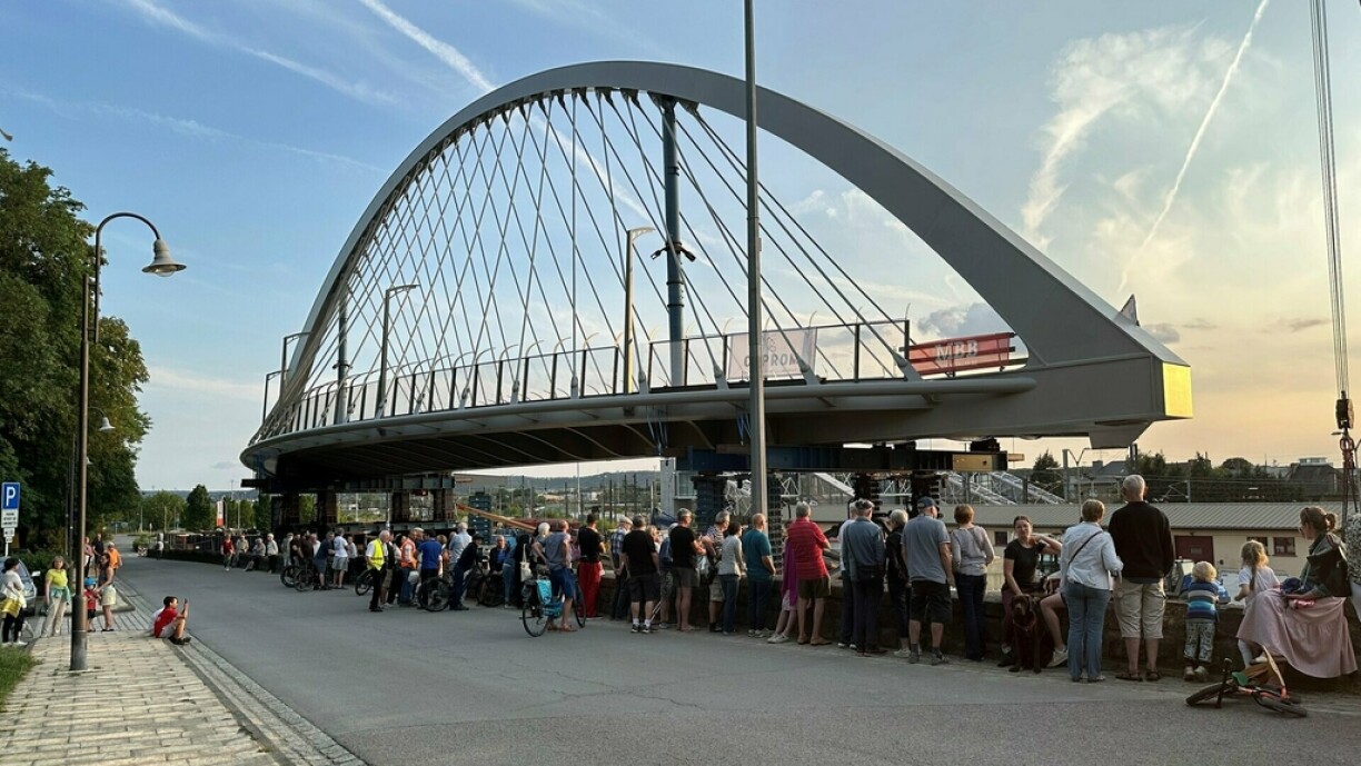 Curious onlookers assembled in Bettembourg on Wednesday evening to watch the installation of the new Hammerel bridge, as work commenced at 10pm.