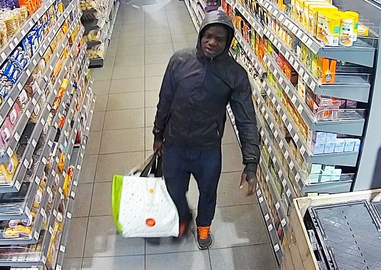 Description: The suspect is a Black man aged between 30 and 40. On Tuesday, he was wearing dark Asics shoes with bright red or orange laces, a black hooded jacket, and dark blue jeans. He had two Luxembourgish shopping bags with him.