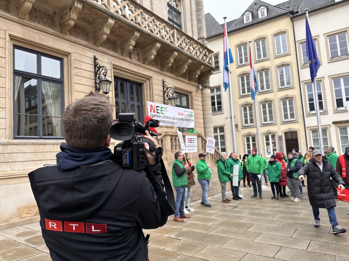 On Wednesday afternoon, members of the Independent Luxembourg Trade Union Confederation (OGBL) and the Luxembourg Confederation of Christian Trade Unions (LCGB) staged a demonstration outside the Chamber of Deputies to protest against the planned liberalisation of shop opening hours.