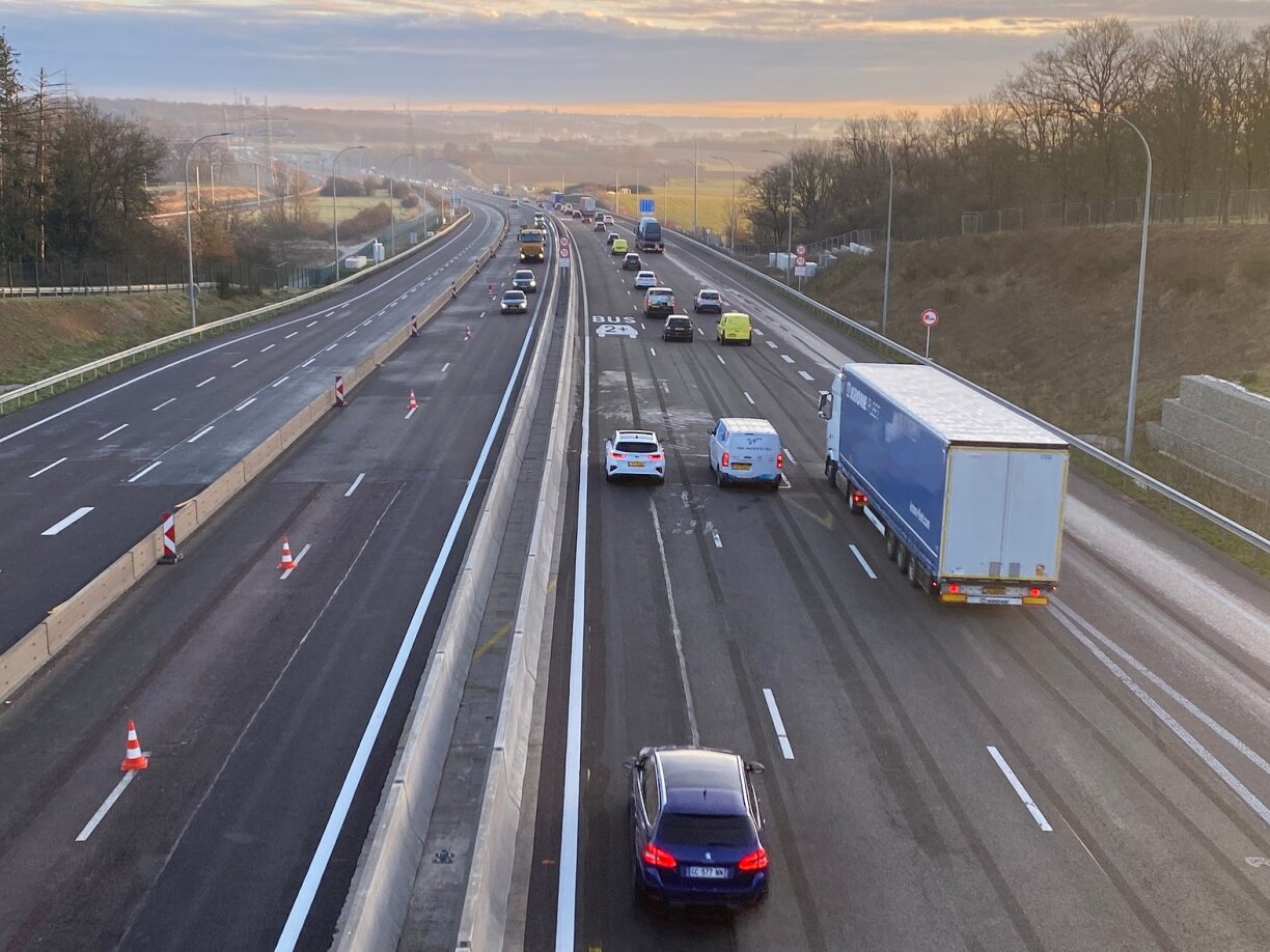 From Sunday 30 March, priority for carpooling and buses – accessible 24 hours a day – will also be introduced in the right-hand lane in the Luxembourg–France direction. The changeover from 3 to 2 lanes will take place via zipper merge, as will be indicated to motorists.