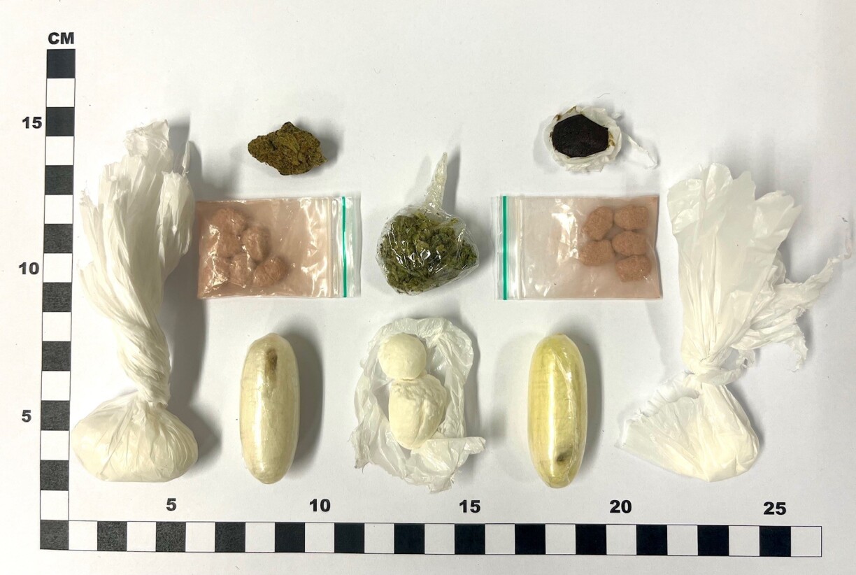 During the check, the canine alerted officers to the suspect, who allegedly attempted – and failed – to conceal the illicit substances. Authorities seized 40g of cocaine, 11 ecstasy pills, and small quantities of hashish and marijuana, along with two mobile phones.