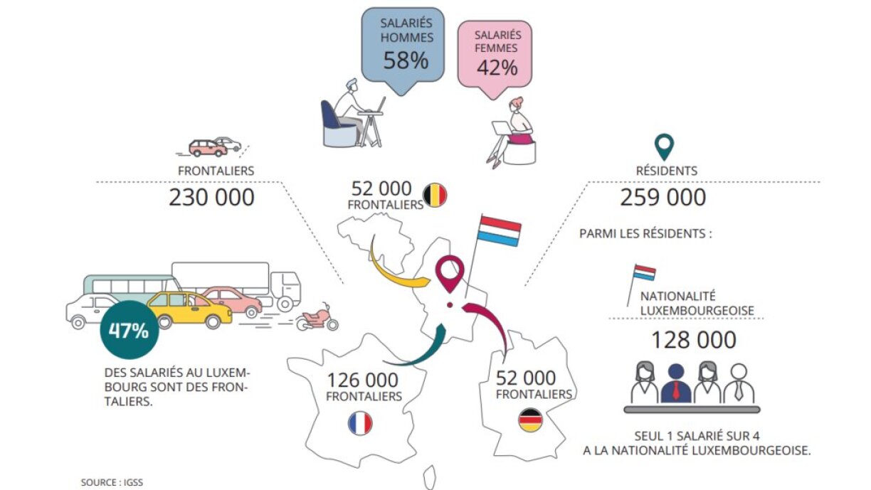 Luxembourg’s labour market reached 485,000 employees in 2024, with cross-border workers making up almost 50%. The largest group commutes from France (126,000), while only one in four employees holds Luxembourgish nationality.