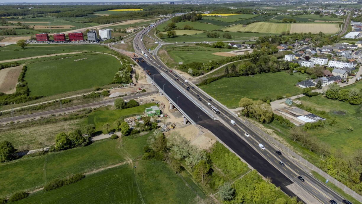 During the final phase of works, the access ramp to the A3 at Livange had been reconfigured to divert France-bound traffic onto a specific section of the viaduct. With completion in sight, this ramp is now being reshaped again to restore its original layout.