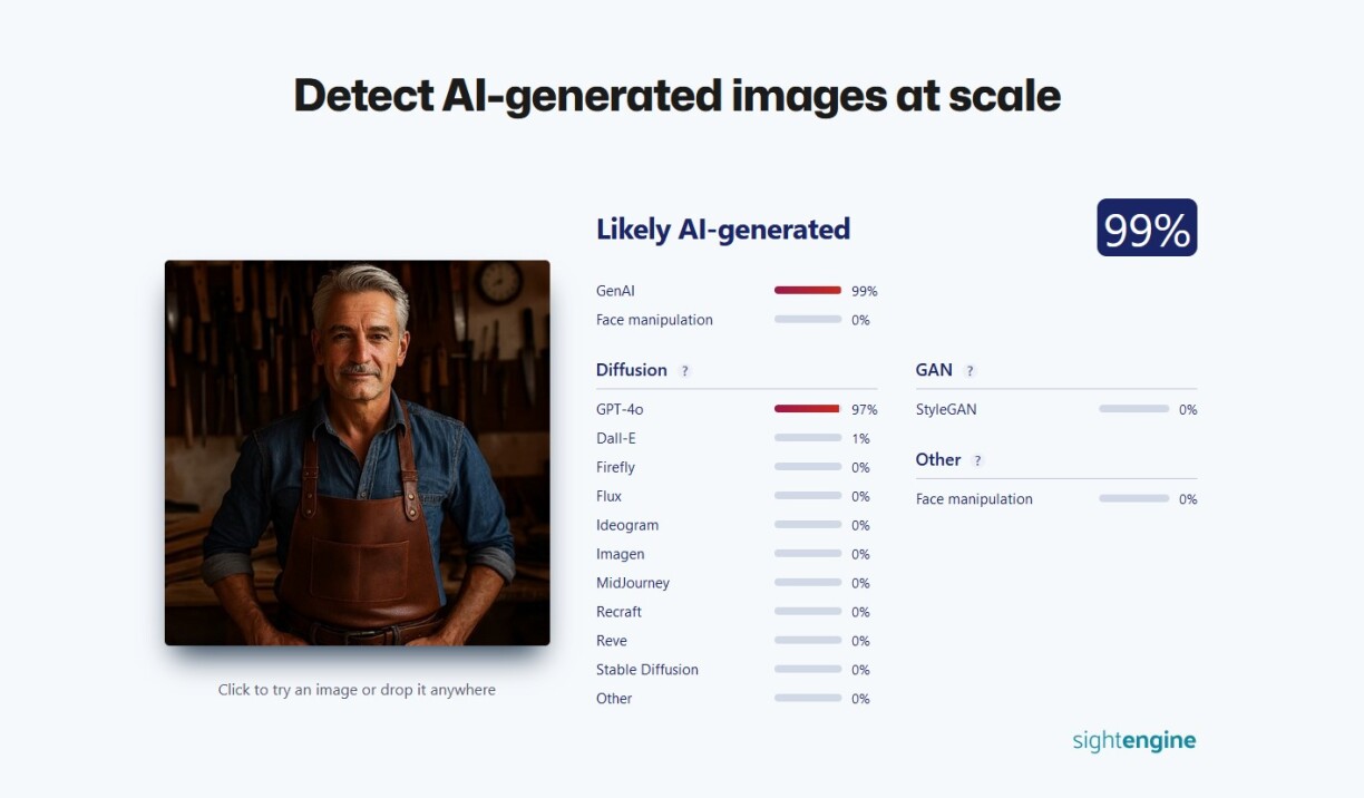 The pictures used on the website and the Facebook account are either easily identifiable as AI generated or stock photos, some of which may be over ten years old. Reverse image searches confirm none of the promotional photos depict authentic products or the purported artisan.