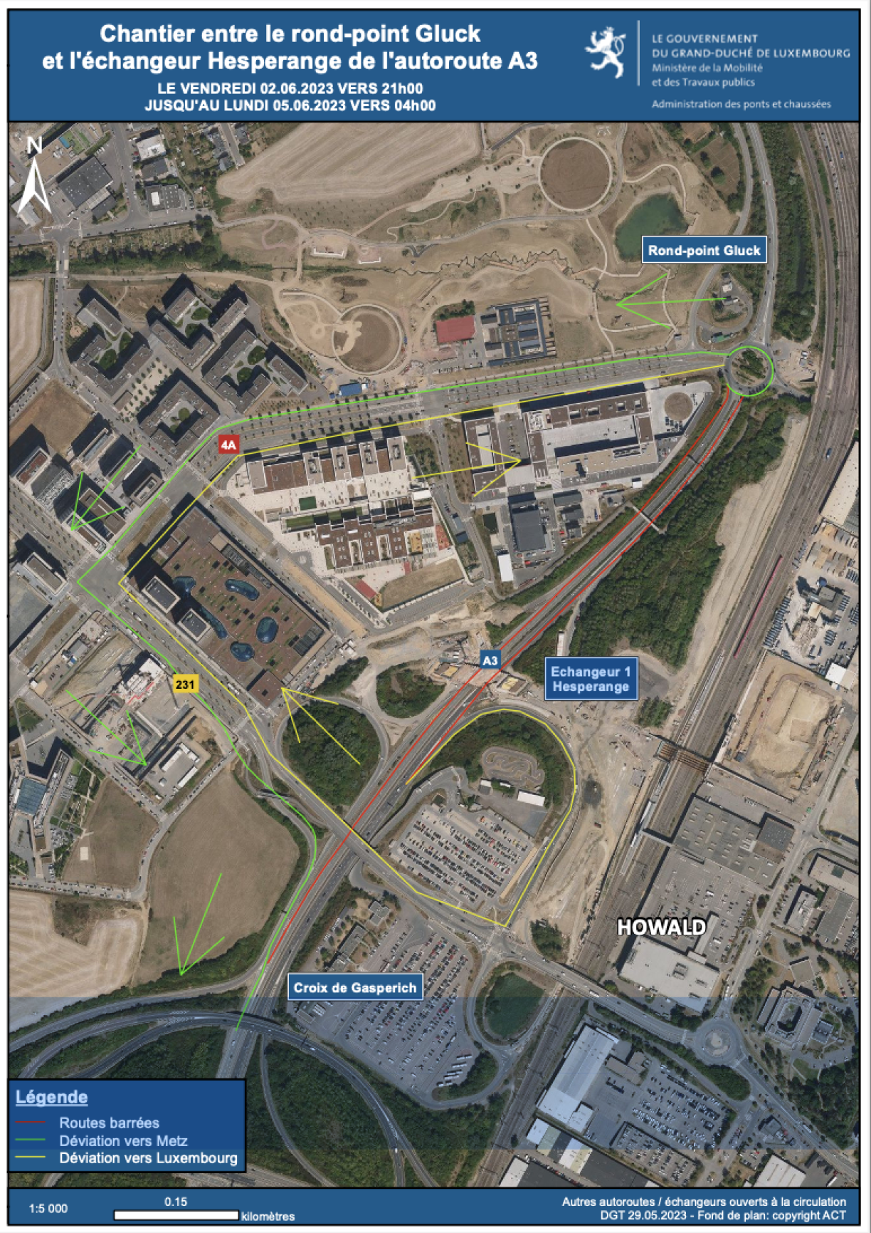 In the other direction, traffic will be diverted from the Hesperange interchange via Boulevard F.W. Raiffeisen and Boulevard de Kockelscheuer.