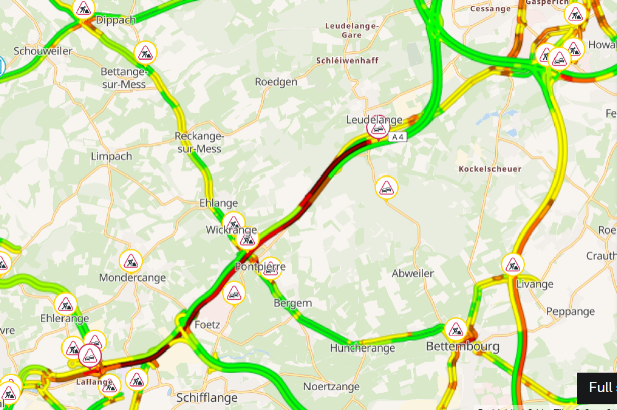 Congestion quickly formed in the Luxembourg-Esch direction for several kilometres. At 8am, the traffic jam even stretched as far as the Leudelange/Nord slip road.