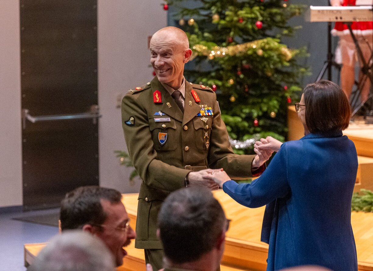 Amidst the discussions on military affairs, the festive atmosphere in Diekirch was maintained by the military music, which rather unusually also included modern songs, encouraging audience participation. Minister of Defence Yuriko Backes even joined General Steve Thull for a brief dance.