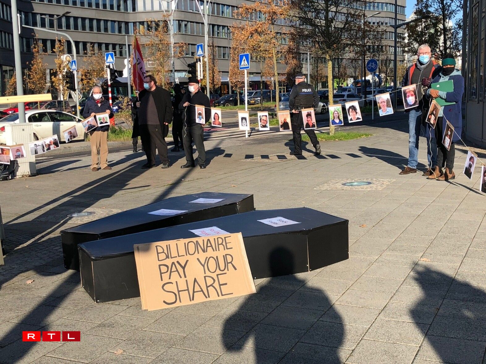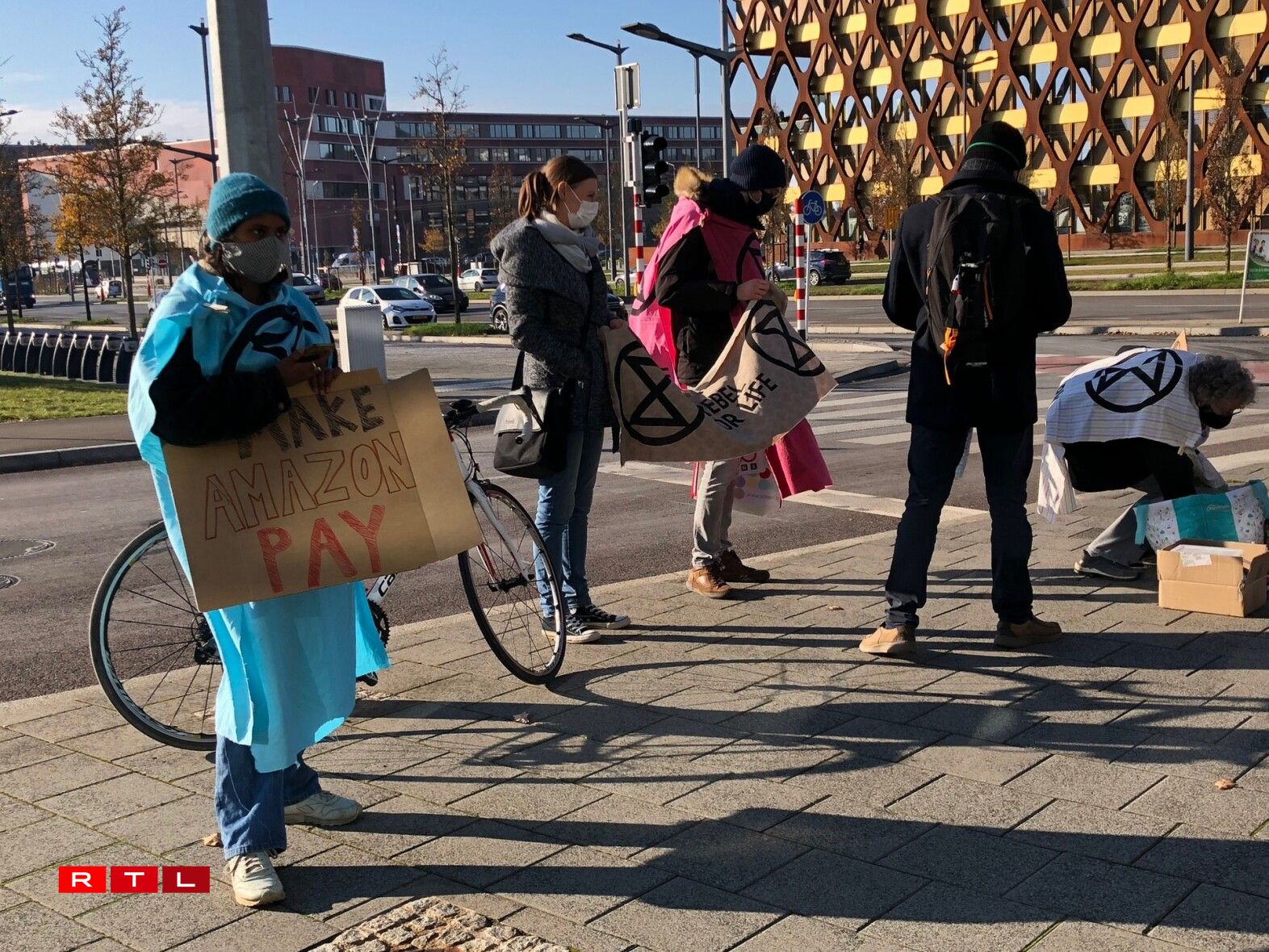 On Friday afternoon, a group of around 30 people gathered outside the Kirchberg headquarters to protest against Black Friday, citing the company’s working conditions, environmental impact and tax avoidance as the reasons fuelling the demonstration.