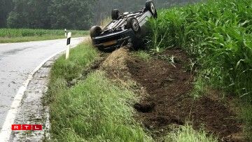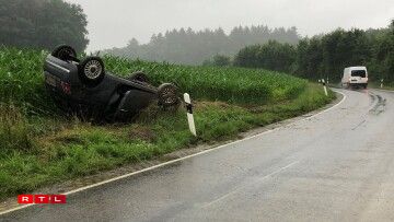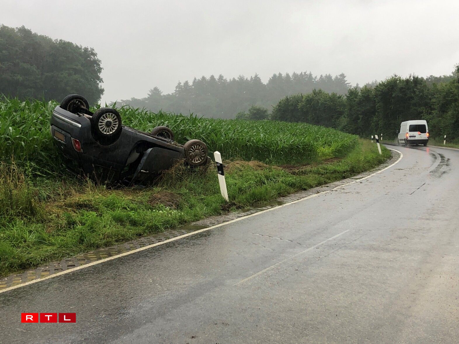 Risk of aquaplaningCar flips over in Buschdorf, lands on roof