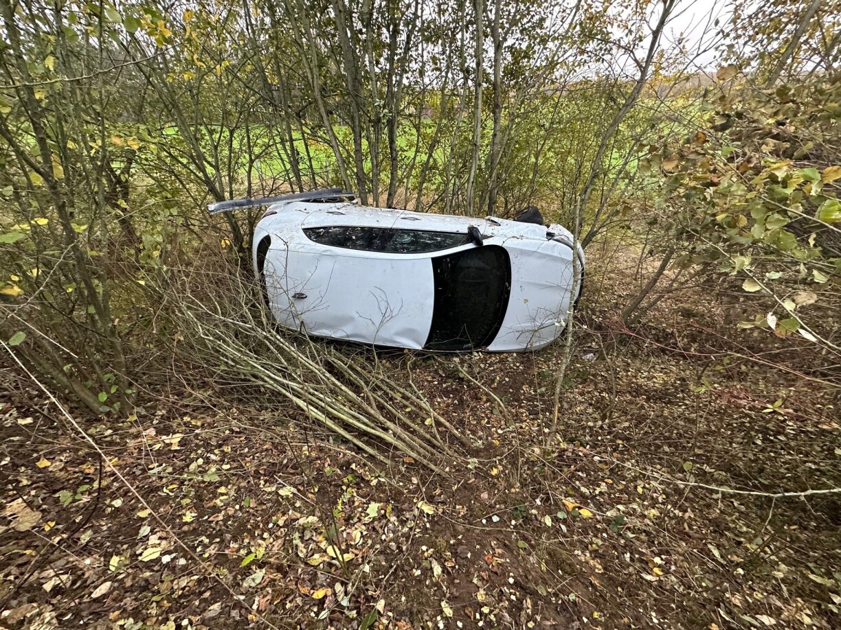 According to initial reports, the driver lost control while negotiating a left-hand curve. Subsequently, the car left the road, tumbled down an embankment, and collided with multiple hedges. The vehicle eventually came to a halt, inverted, approximately 30 metres away from the road.