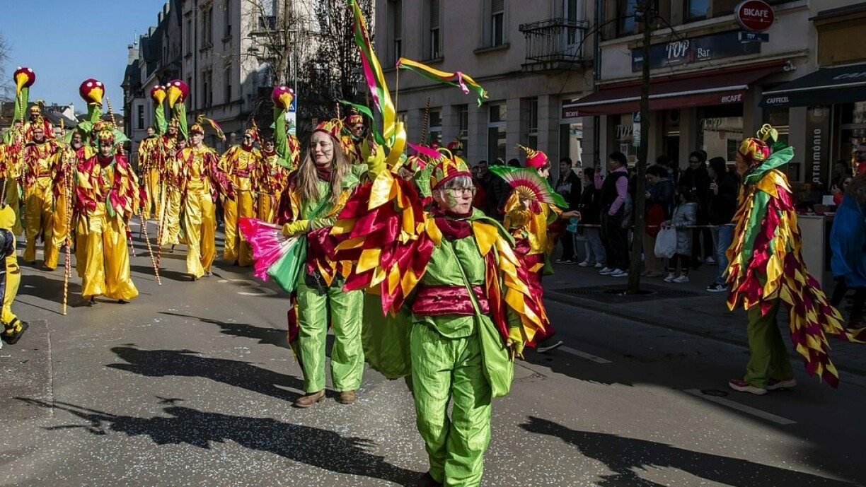 From confetti to extravagant costumes and Americans distributing candy instead of tax increases, Esch did not lack anything on Sunday. People were disguised as colourful birds, dancers, pink barbies, sushi chefs, and cowboys.