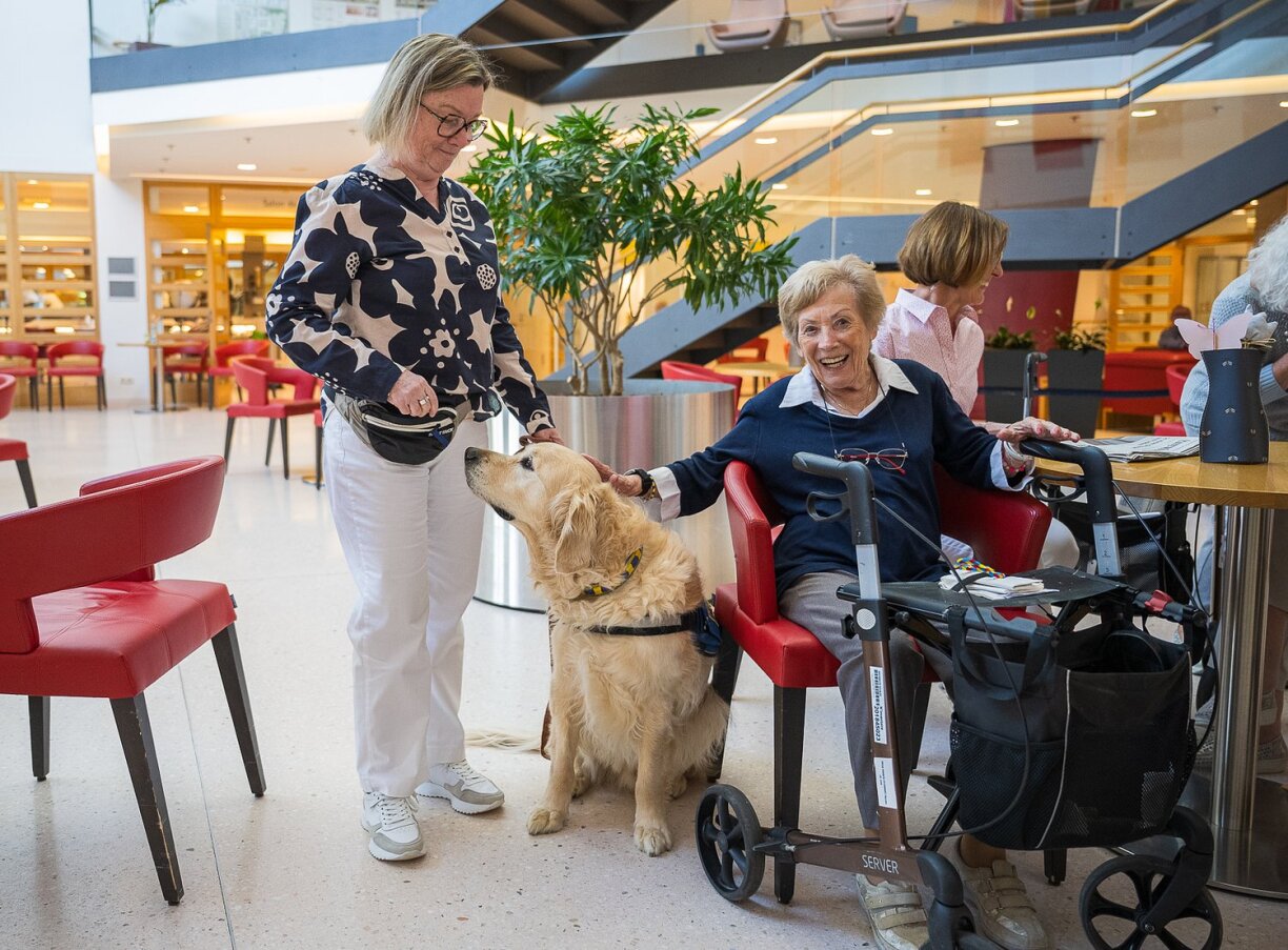 One particularly beloved visitor to the home is Joke, a seven-year-old golden retriever. This therapy dog brings joy and comfort to the residents, and the entire staff agrees that his presence is a great asset. Agnes Daemen-Steichen, who worked at the home with a therapy dog for ten years and now volunteers, described how the dog often triggers memories in the residents, reminding them of their own pets and encouraging conversation.