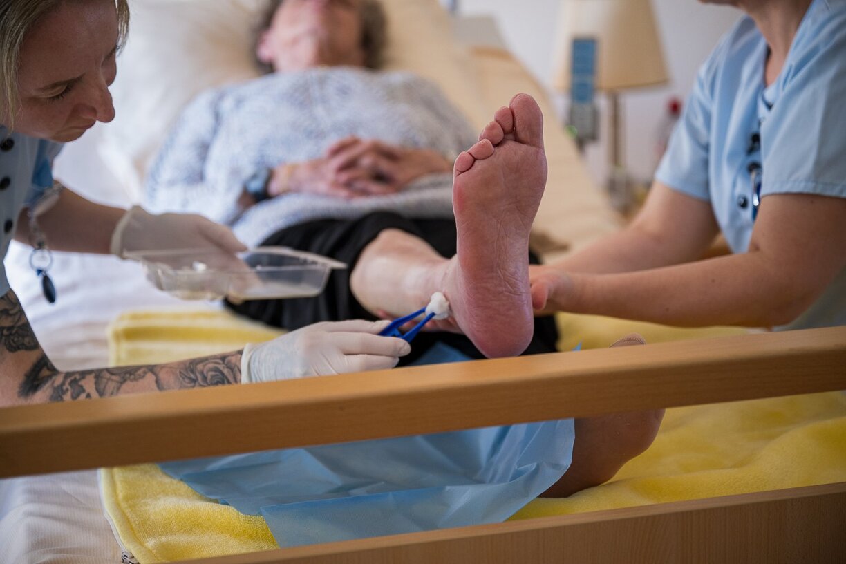 As life expectancy increases, so too does the importance of regular care. Staff frequently visit residents in their rooms to monitor their health and change bandages as needed. Nurse Beate Hornberger, who has worked at the facility for 12 years, noted that some wounds require daily dressing changes, while others only need to be redressed every three to five days.