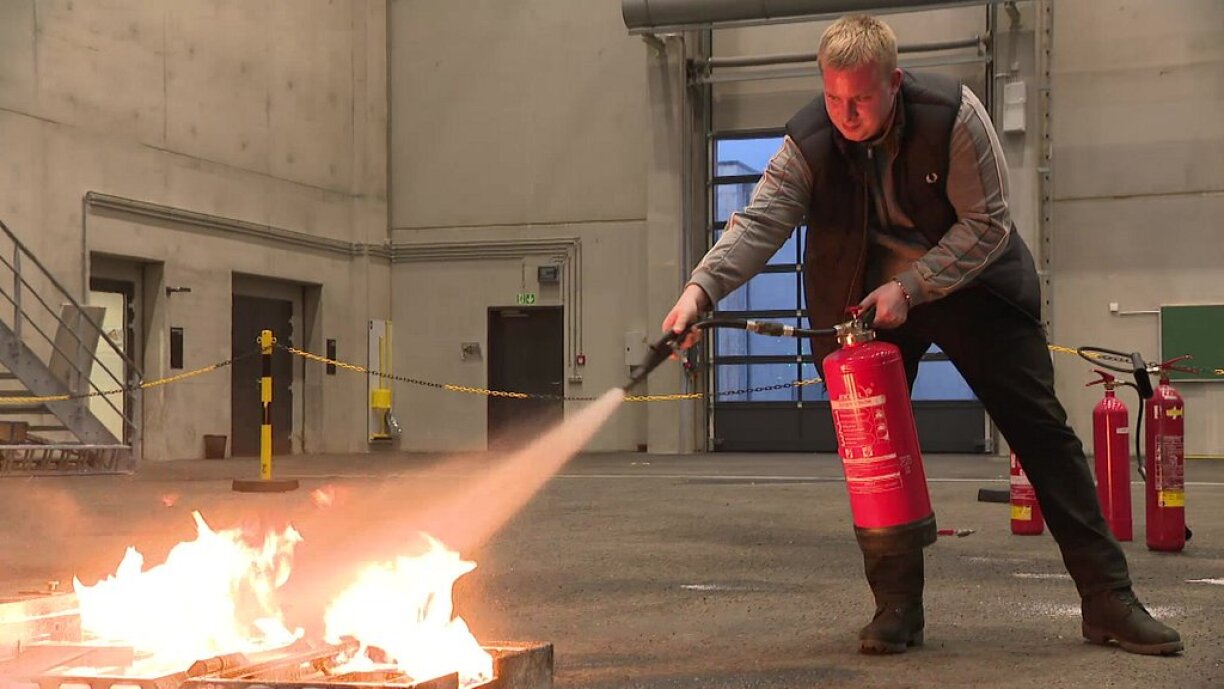 The class is held across two days and starts with four hours of theory. Participants get taught how to best react when a fire unexpectedly breaks out, which includes learning about the different types of fires as well as extinguishers.