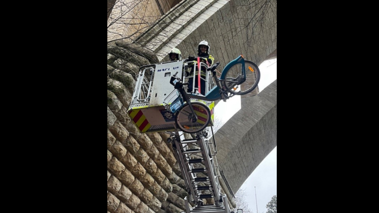 An unknown individual launched a “Vélo’h” from the Adolphe bridge in Luxembourg City. Rather than landing in the Alzette valley below, the bike found itself suspended from the top of a tree under the bridge.