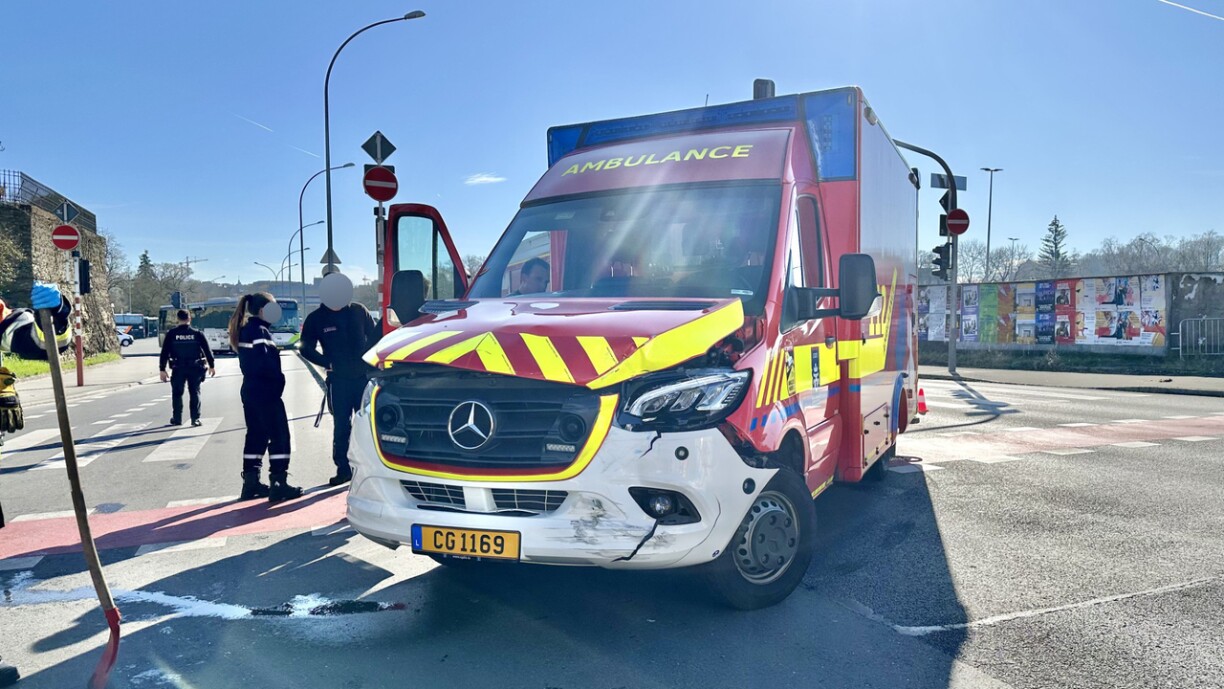 The collision took place around 9.15am on the N56, when the ambulance collided with a car at the intersection of Boulevard Pierre Dupong in Hollerich, near the Forum Geesseknäppchen.