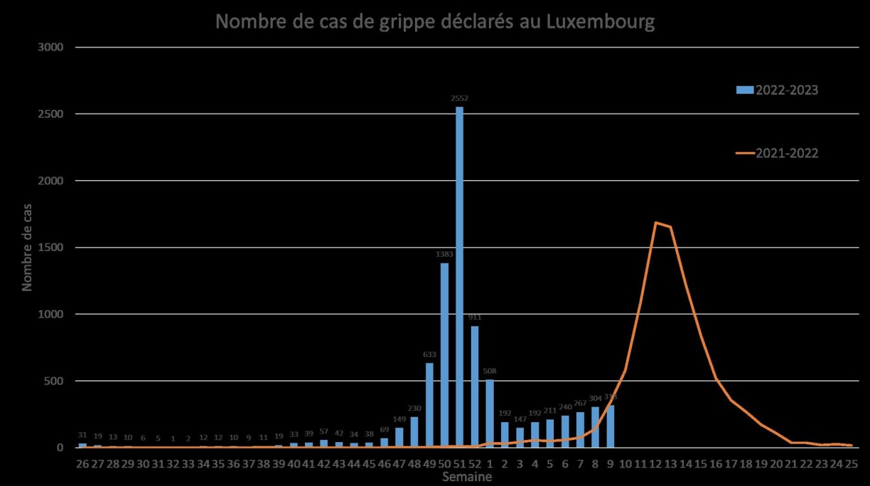 From 27 February to 5 March, the number of influenza cases also increased from 304 to 318, an increase of 4.6% compared to the previous week. The influenza virus type B is currently predominant.