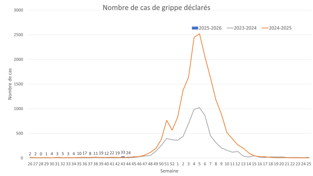 The number of flu infections detected in Luxembourg’s laboratories also dropped from 33 to 24 over the past week. Each case was influenza type A.