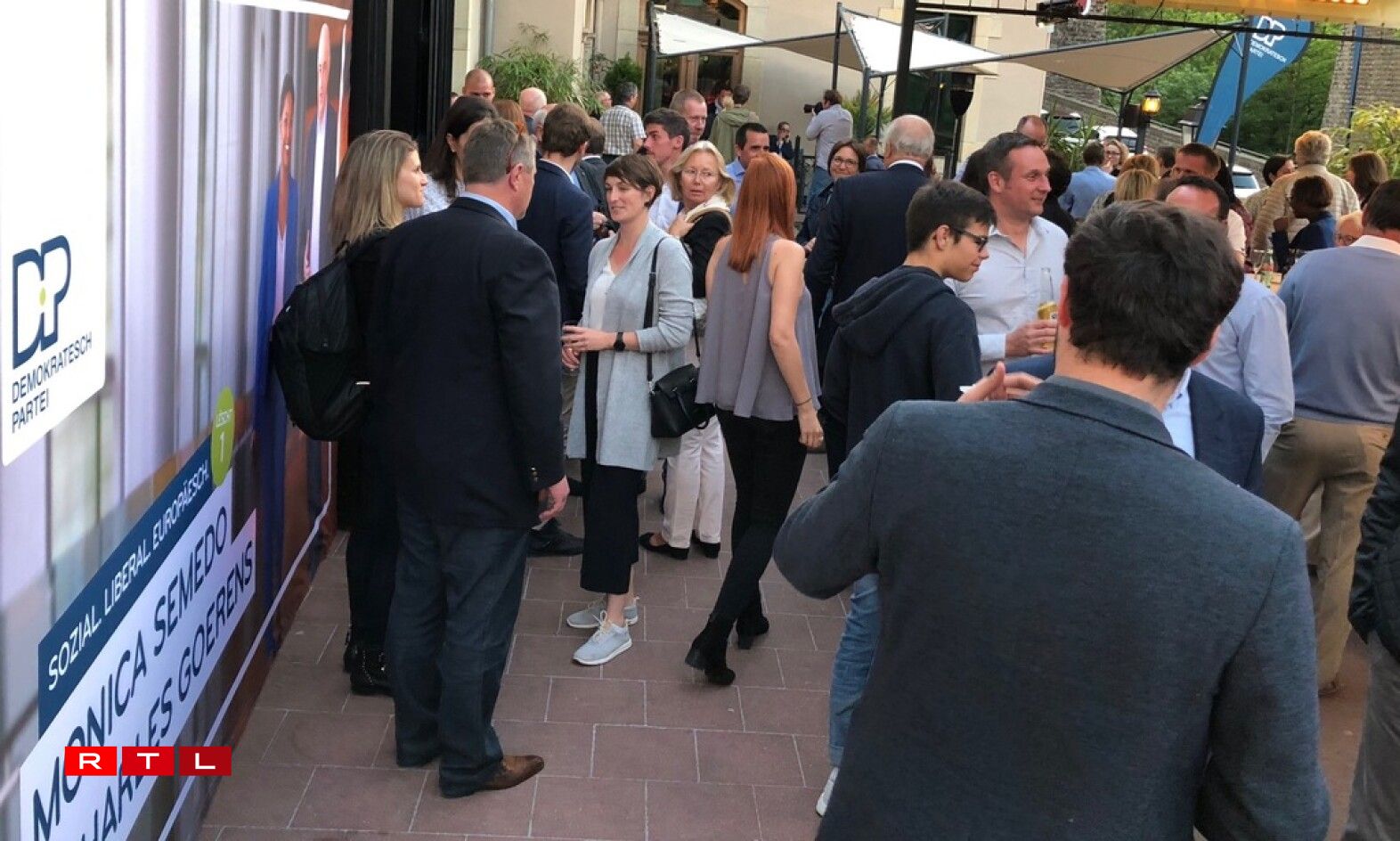 LSAP party members and candidates are congregating outside the bar Urban in the capital.