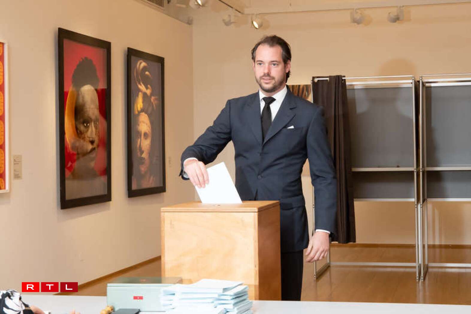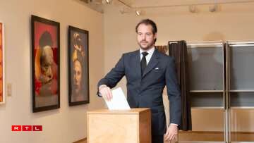 Hereditary Grand Duke Guillaume and Hereditary Grand Duchess Stéphanie, accompanied by Prince Felix, walked happily to the Cercle Cité in the capital to vote in the European elections.