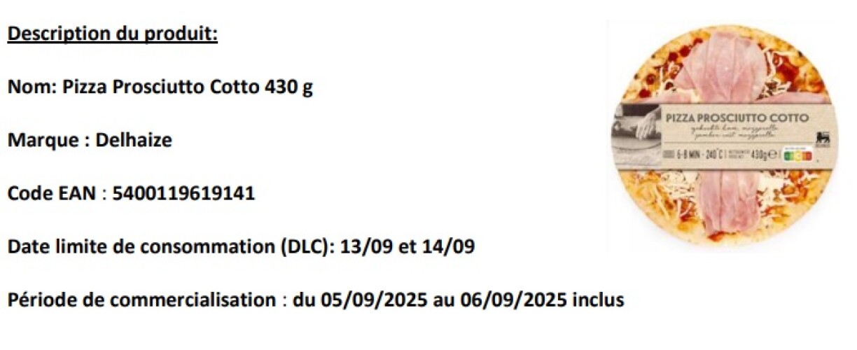 Delhaize has decided to withdraw the product ‘Delhaize Pizza Prosciutto Cotto 430g’ from sale and recall it from consumers due to an incorrect expiry date.