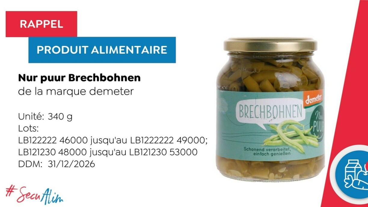 According to a statement on Friday, foreign bodies had been discovered in jars of the green beans, including glass pieces. The product affected is the 340-gram jar of the ‘“Nur puur Brechbohnen”, pictured above, which are sold in several locations across the country.