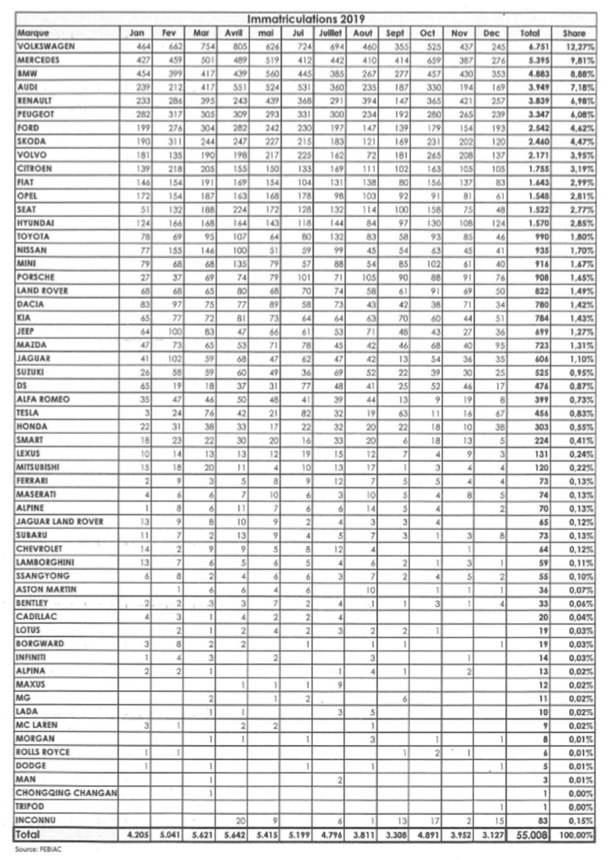 As the 56th edition of the Autofestival opened in Luxembourg this Saturday (from January 25th to February 3rd), our colleagues at 5minutes unveil the hit parade of the brands that were registered in 2019.