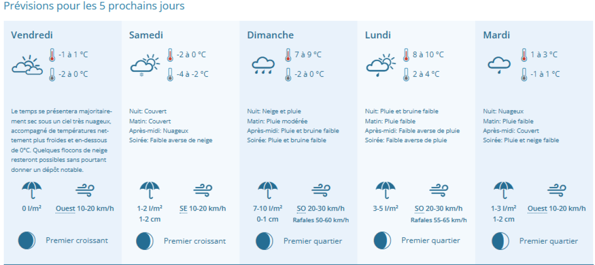Looking ahead, light snow showers are predicted for Friday and Saturday, with temperatures dipping below zero. Friday’s thermometer will range from -2°C to 1°C, while Saturday evening could see lows of -4°C. By Sunday and Monday, temperatures will rise sharply to around 10°C before plunging again next Tuesday.