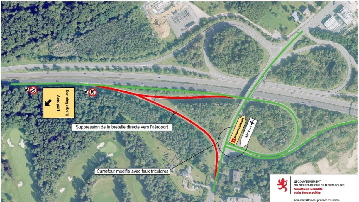 Motorists travelling on the A1 motorway towards Trier will no longer be able to take a direct route to the airport, but instead will be redirected through Senningerberg.