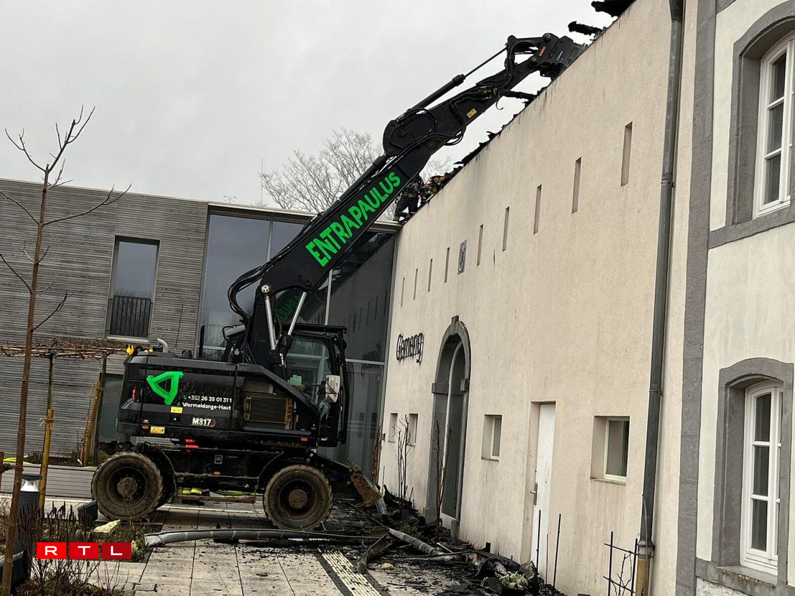 In a race against time, firefighting teams from multiple municipalities, including Junglinster, Mersch, Hesperange, Lenningen, Consdorf, Manternach, Wormeldange, Walferdange, Steinsel, Kehlen, Roeser, Bettembourg, Remich, and the City, worked tirelessly to control a fire still burning underneath debris from a collapsed roof. An excavator was deployed to facilitate the removal process, as the operation extended into the afternoon.
