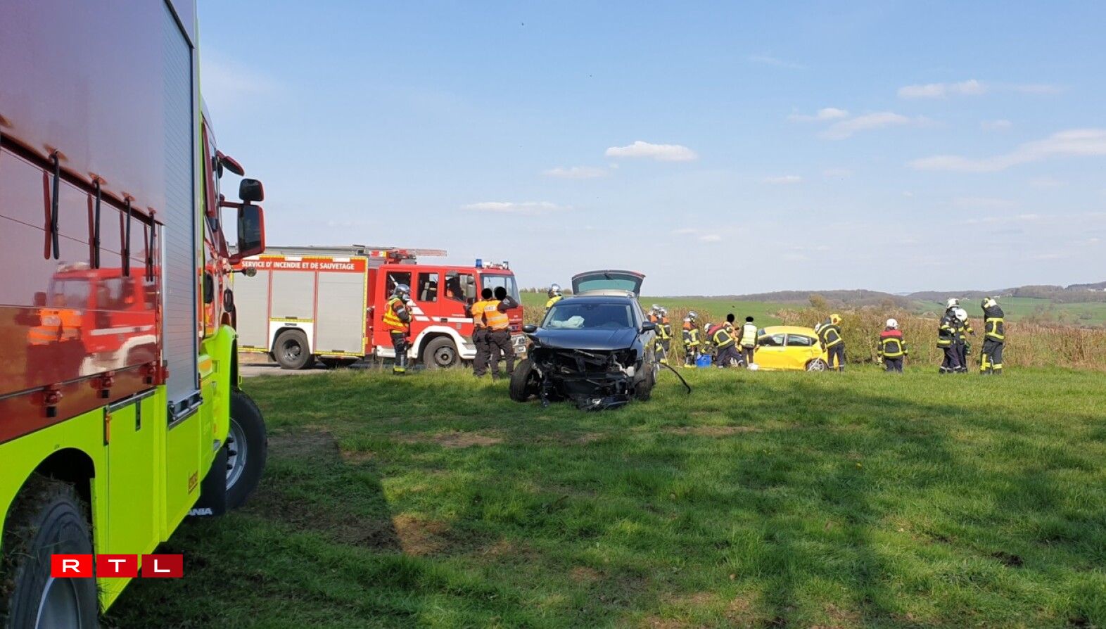 Two vehicles collided on Saturday afternoon. Emergency services from Useldange, Bissen, Lintgen, and Larochette were called to the scene and had to free two people from their crashed vehicles. Two further people, as well as one animal, suffered minor injuries in the accident.